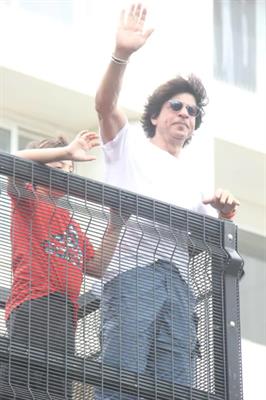 On the auspicious occasion of Eid-ul-Adha, Shah Rukh Khan greeted his fans, stationed outside his Mumbai residence Mannat along with his little munchkin AbRam Khan.